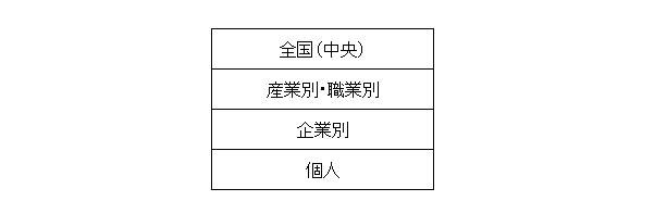 ここで、労使関係について整理しておきたい。労使関係は、全国、産業別・職業別、企業別(事業所別)、個人という複数のレベル(階層)によって形成されている。